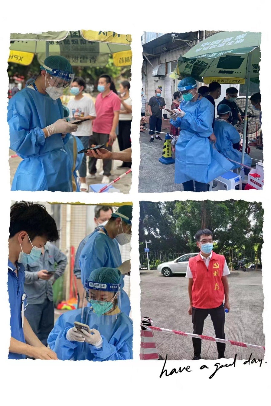 为起劲响应社区防控要求,,,,,,,,充分验展党员先锋模范作用,,,,,,,,7月18日新宝gg科技党支部组织党员同志加入疫情防控事情,,,,,,,,支部党员刘垚、于园、胡仁涛同志及生长工具王淮边同志加入了疫情防控事情,,,,,,,,为核酸检测扫码挂号,,,,,,,,维持秩序。。。。。。。。各人排队经由的时间,,,,,,,,都没有发明漂亮的于园同志,,,,,,,,潇洒的胡仁涛同志,,,,,,,,帅气的王淮边同志变身臃肿的大蓝,,,,,,,,在大电扇一股股热风中挥汗如雨,,,,,,,,几个小时下来腰酸背痛,,,,,,,,人都有点虚脱了。。。。。。。。可是能够为深圳的防疫事情尽到一点实力,,,,,,,,他们年轻的脸上尽是知足的笑容。。。。。。。。今天的核酸点飘扬的是新宝gg科技党支部的旌旗。。。。。。。。